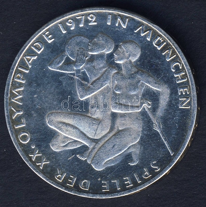 NSZK 1972F 10M Ag "Olimpia-Játékosok" T:BU https://www.darabanth.com/de/90-Fernauktion/90.0/Numismatik/~200041/NSZK-1972F-10M-Ag-Olimpia-Jatekosok-TBU~II198891