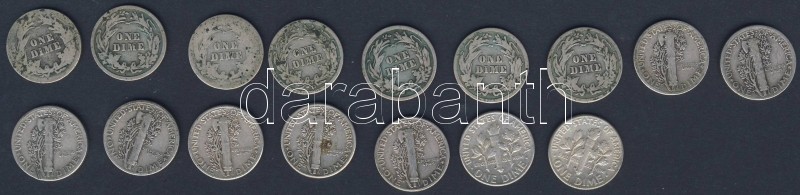 Beschreibung: USA 1903-64. 10c Ag "Barber" (7x) + "Mercury" (7x) + "Roosevelt" (2x) T:2,3,3/4,4 Összesen 16db! Mind klf évszámmal!