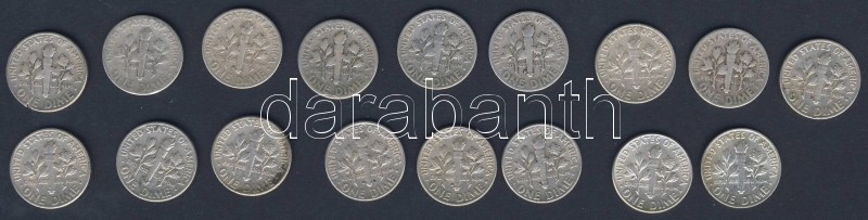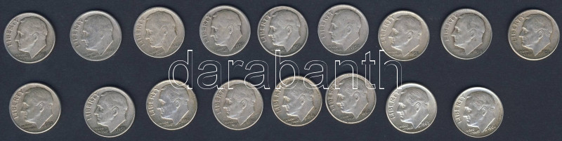 USA 1946-64. 10c Ag "Roosevelt" (17x) mind klf évszám! T:2,3 https://www.darabanth.com/de/90-Fernauktion/90.0/Numismatik/~200041/USA-1946-64-10c-Ag-Roosevelt-17x-mind-klf-evszam-T2-3~II197376
