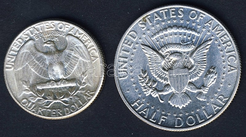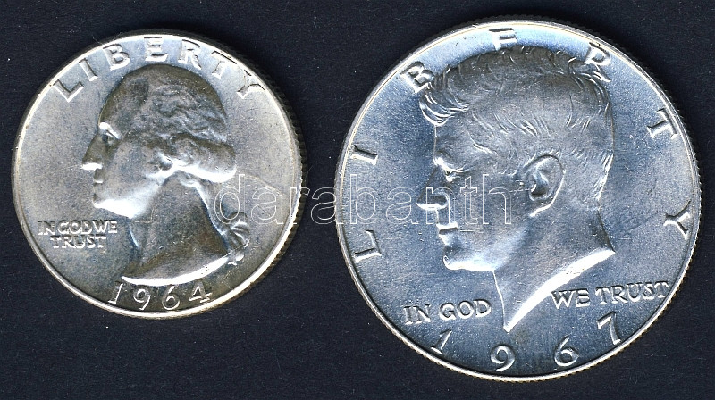 USA 1964. 1/4$ Ag "Washington" T:1 + 1967. 1/2$ Ag "Kennedy" T:2 https://www.darabanth.com/de/90-Fernauktion/90.0/Numismatik/~200041/USA-1964-14USD-Ag-Washington-T1-plus-1967-12USD-Ag-Kennedy-T2~II199640