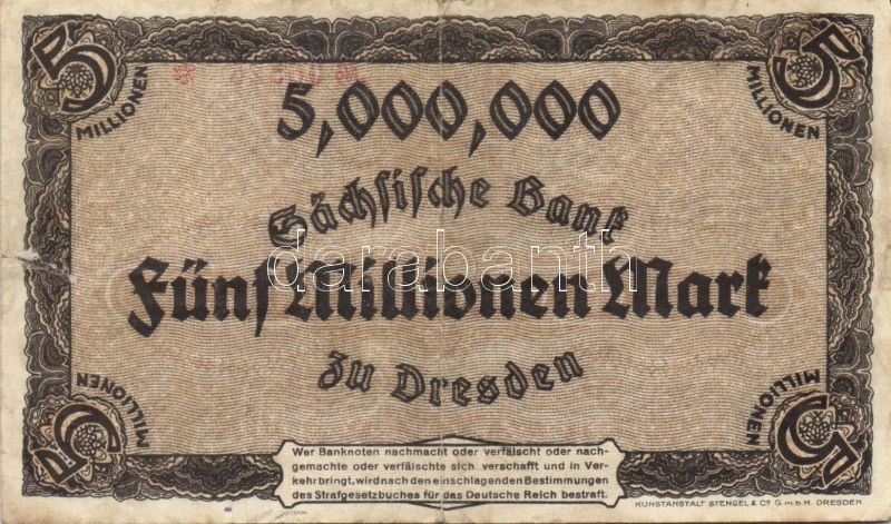 Német Birodalom / Weimari Köztársaság 1923. 5.000.000.000M (14x) T:III https://www.darabanth.com/de/90-Fernauktion/90.0/Numismatik/~200045/Nemet-Birodalom-Weimari-Koztarsasag-1923-5000000000M-14x-TIII~II197264