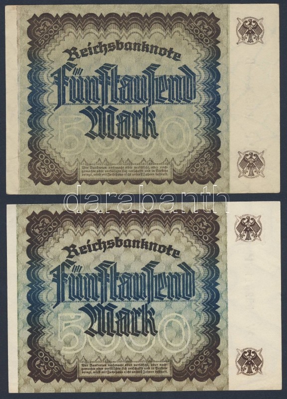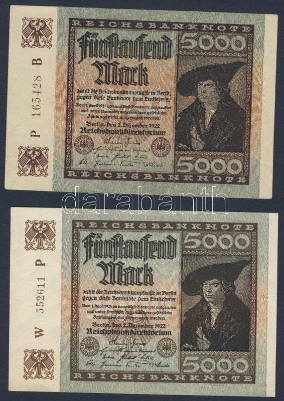 Beschreibung: Német Birodalom/Weimari Köztársaság 1922. 5000M(2x) 2klf vízjellel! T:I-