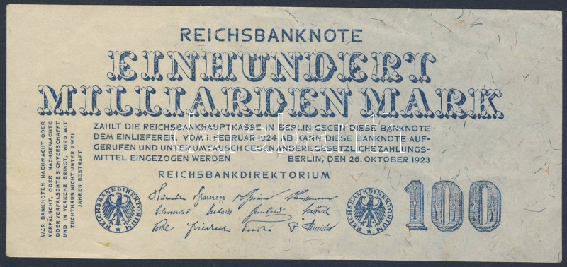 Német Birodalom/Weimari Köztársaság 1923. 100.000.000.000M T:II https://www.darabanth.com/de/90-Fernauktion/90.0/Numismatik/~200045/Nemet-BirodalomWeimari-Koztarsasag-1923-100000000000M-TII~II197443