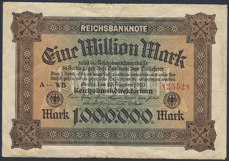 Német Birodalom/Weimari Köztársaság 1923. 1000.000M T:III- https://www.darabanth.com/de/90-Fernauktion/90.0/Numismatik/~200045/Nemet-BirodalomWeimari-Koztarsasag-1923-1000000M-TIII-~II197440