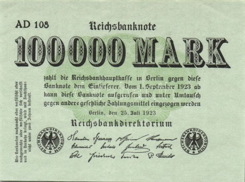 Német Birodalom/Weimari Köztársaság 1923. 100.000M T:I- https://www.darabanth.com/de/90-Fernauktion/90.0/Numismatik/~200045/Nemet-BirodalomWeimari-Koztarsasag-1923-100000M-TI-~II199607