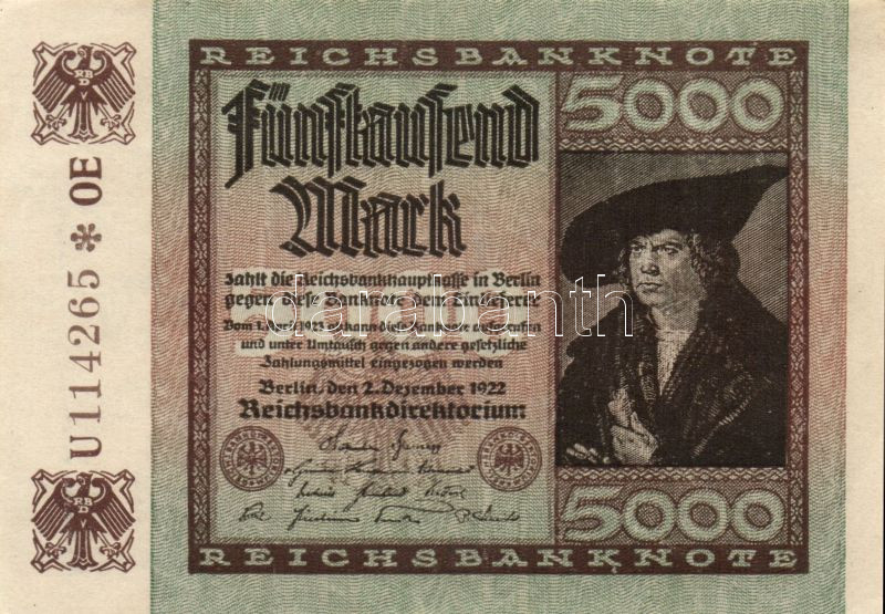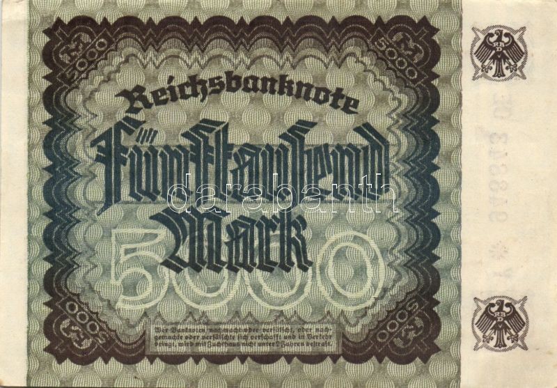 Német Birodalom/Weimari Köztársaság 1923. 5000M (4X)4klf vízjellel T:I... https://www.darabanth.com/de/90-Fernauktion/90.0/Numismatik/~200045/Nemet-BirodalomWeimari-Koztarsasag-1923-5000M-4X4klf-vizjellel-TI-~II199614