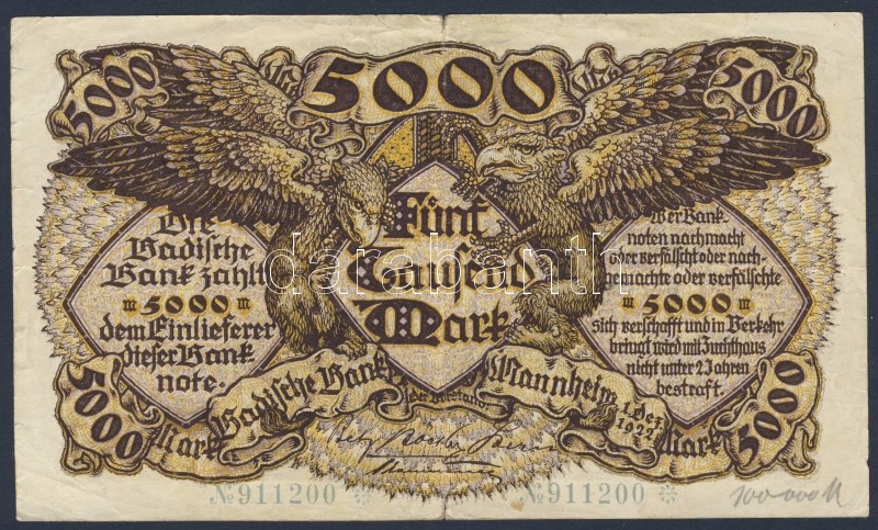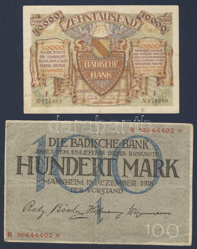 Német Birodalom/Weimari Köztársaság/Baden/Badische Bank 1918. 100M + 1... https://www.darabanth.com/de/90-Fernauktion/90.0/Numismatik/~200045/Nemet-BirodalomWeimari-KoztarsasagBadenBadische-Bank-1918-100M-plus-1922-5000M-plus-1923-10000M-~II197076