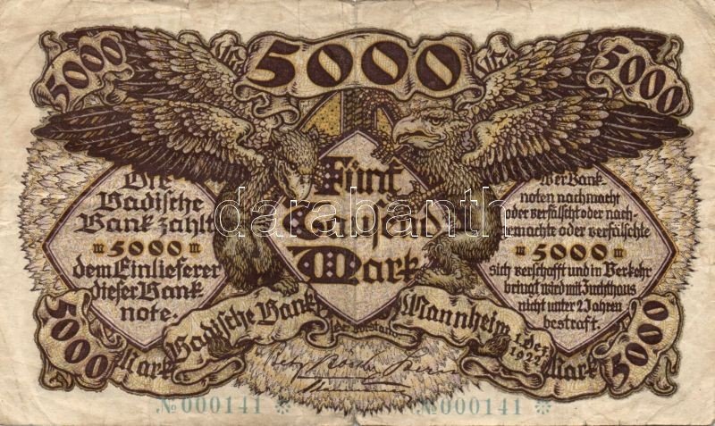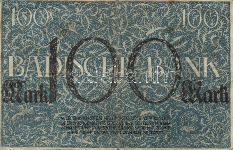 Német Birodalom/Weimari Köztársaság/Baden/Badische Bank 1918. 100M + 1... https://www.darabanth.com/de/90-Fernauktion/90.0/Numismatik/~200045/Nemet-BirodalomWeimari-KoztarsasagBadenBadische-Bank-1918-100M-plus-1922-5000M-plus-1923-10000M-~II197077