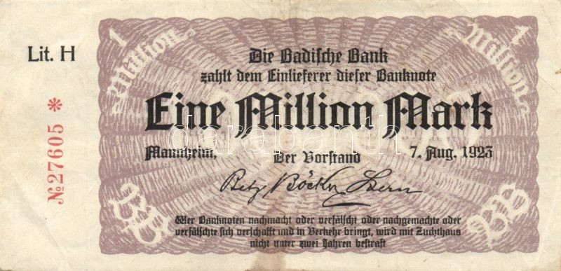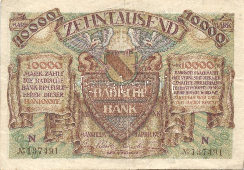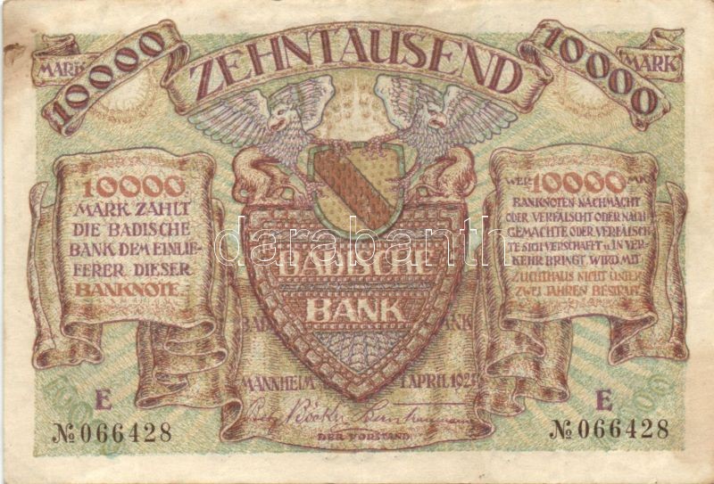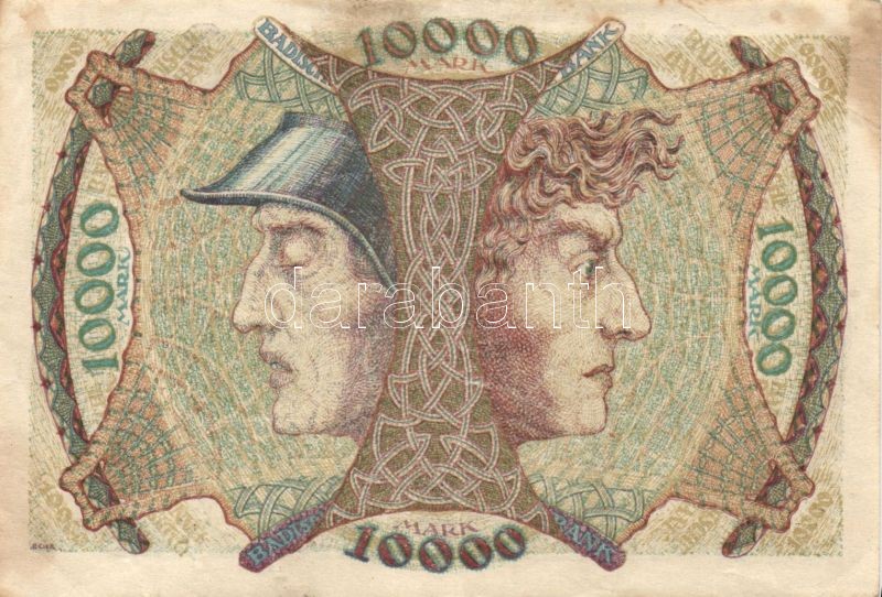 Német Birodalom/Weimari Köztársaság/Baden/Badische Bank 1923. 10000M(2... https://www.darabanth.com/de/90-Fernauktion/90.0/Numismatik/~200045/Nemet-BirodalomWeimari-KoztarsasagBadenBadische-Bank-1923-10000M2x-plus-1000000M-TII-II-~II197248