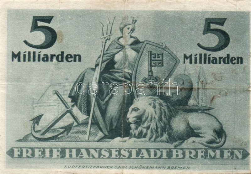 Német Birodalom/Weimari Köztársaság/Bréma/Finanzdeputation 1923. 50000... https://www.darabanth.com/de/90-Fernauktion/90.0/Numismatik/~200045/Nemet-BirodalomWeimari-KoztarsasagBremaFinanzdeputation-1923-5000000M-TII-~II197249