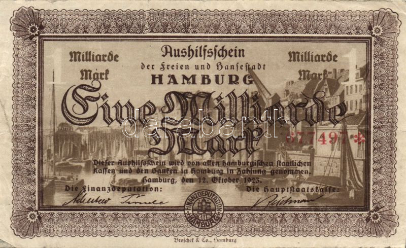 Német Birodalom/Weimari Köztársaság/Hamburg 1923. 1000000000M T:II/III https://www.darabanth.com/de/90-Fernauktion/90.0/Numismatik/~200045/Nemet-BirodalomWeimari-KoztarsasagHamburg-1923-1000000000M-TIIIII~II197269