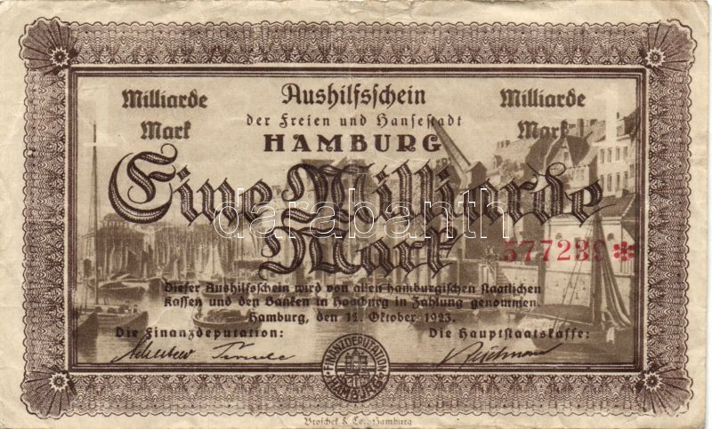 Német Birodalom/Weimari Köztársaság/Hamburg 1923. 1000000000M T:II/III https://www.darabanth.com/de/90-Fernauktion/90.0/Numismatik/~200045/Nemet-BirodalomWeimari-KoztarsasagHamburg-1923-1000000000M-TIIIII~II197270