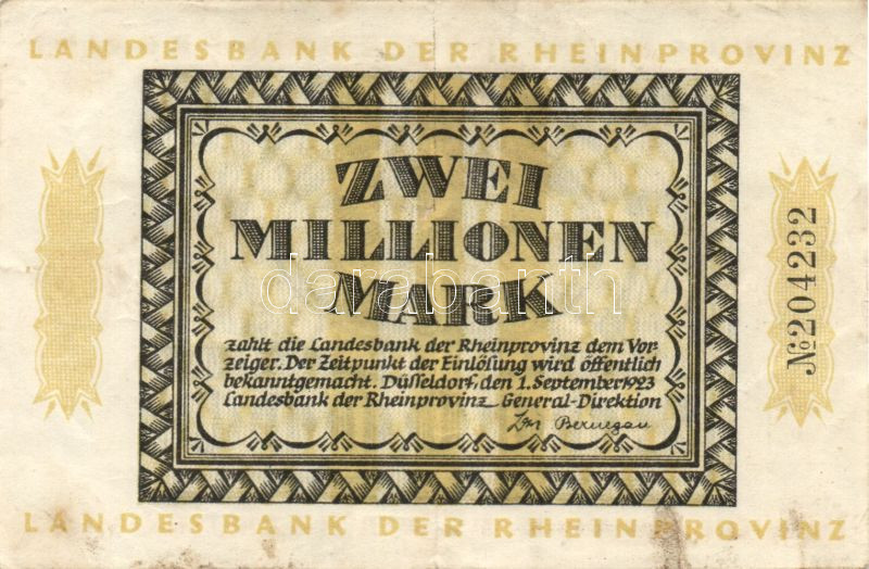 Beschreibung: Német Birodalom/Weimari Köztársaság/Poroszország/Rheinprovinz/Landesbank 1923. 2000000M T:II/III+
