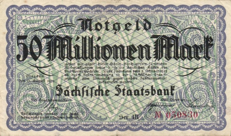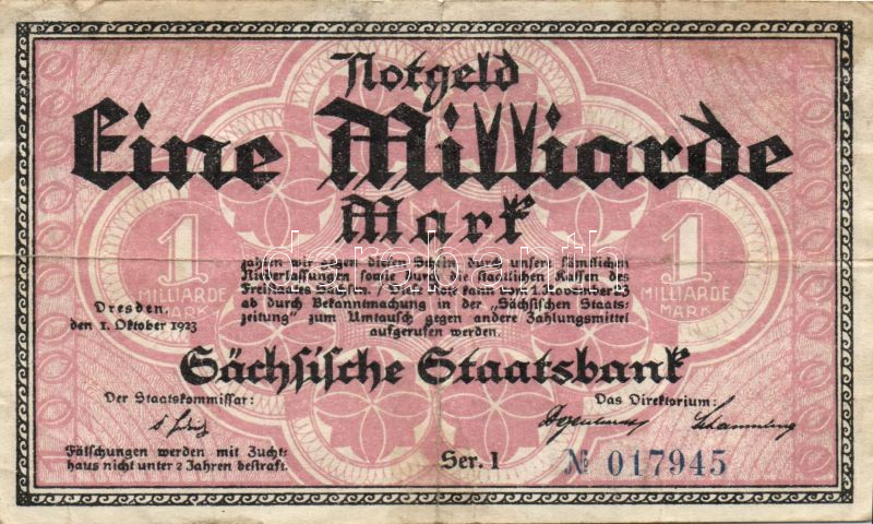 Német Birodalom/Weimari Köztársaság/Szászország/Sachsische Staatsbank ... https://www.darabanth.com/de/90-Fernauktion/90.0/Numismatik/~200045/Nemet-BirodalomWeimari-KoztarsasagSzaszorszagSachsische-Staatsbank-1923-1000000M-50000000~II197278