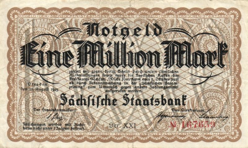 Német Birodalom/Weimari Köztársaság/Szászország/Sachsische Staatsbank ... https://www.darabanth.com/de/90-Fernauktion/90.0/Numismatik/~200045/Nemet-BirodalomWeimari-KoztarsasagSzaszorszagSachsische-Staatsbank-1923-500000M-1000000M-~II197276