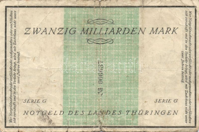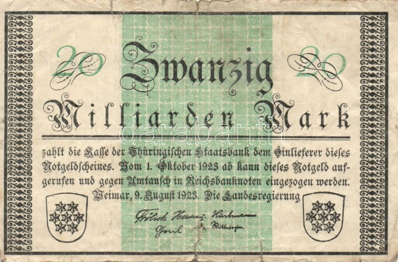 Beschreibung: Német Birodalom/Weimari Köztársaság/Thüringen/Landesregierung Weimar 1923. 20000000000M T:IV R!