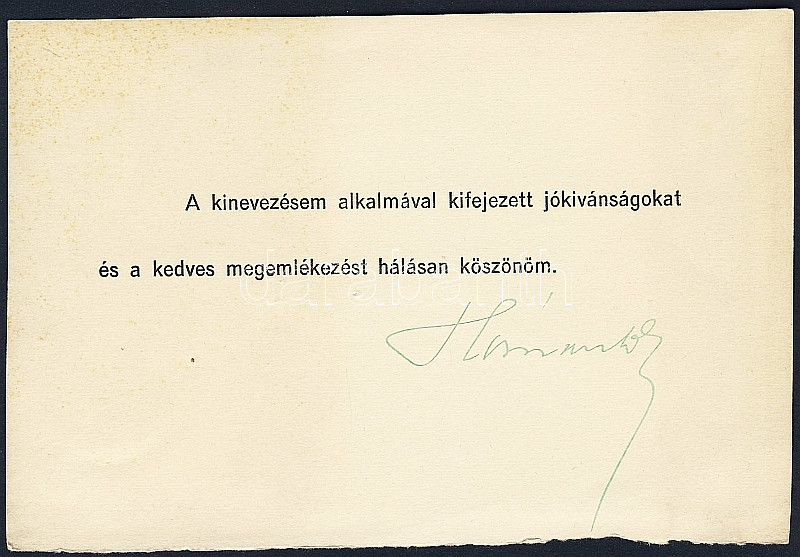 Hóman Bálint kultuszminiszter aláírása kártyán https://www.darabanth.com/de/91-Fernauktion/91.0/Andere-Sammelgebiete/~15113/Homan-Balint-kultuszminiszter-alairasa-kartyan~II203263