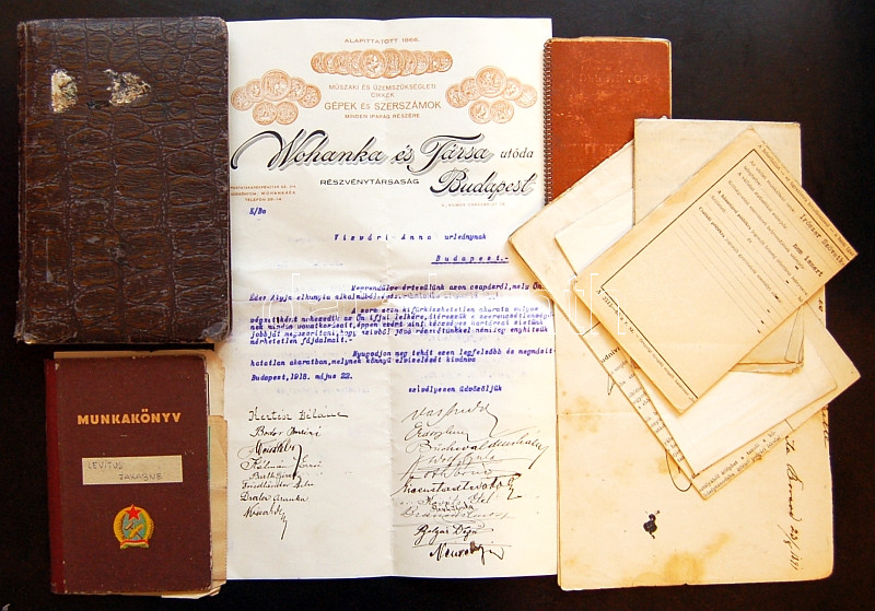 1891-1955 Kis hagyaték tétel: okmányok, számlák, biztosítási iratok, e... https://www.darabanth.com/de/91-Fernauktion/91.0/Andere-Sammelgebiete/~15118/1891-1955-Kis-hagyatek-tetel-okmanyok-szamlak-biztositasi-iratok-emlekkonyv~II202587
