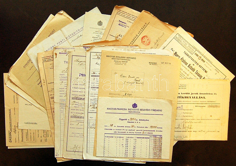 40 db háború előtti biztosítási irat, okmány https://www.darabanth.com/de/91-Fernauktion/91.0/Andere-Sammelgebiete/~15118/40-db-haboru-elotti-biztositasi-irat-okmany~II203325