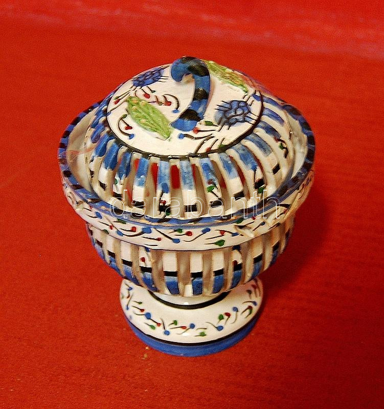 Beschreibung: Kézi festésű áttört kerámia bonbonier