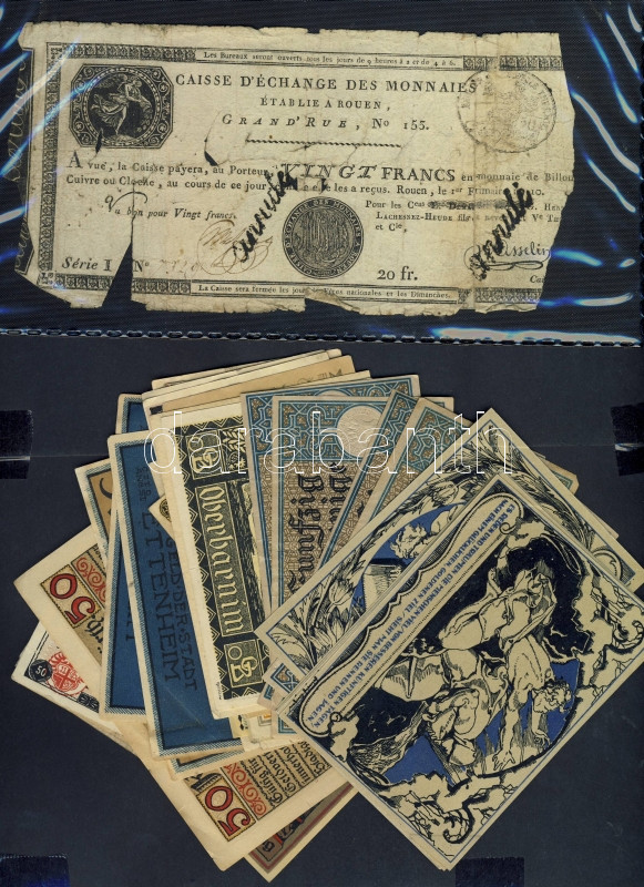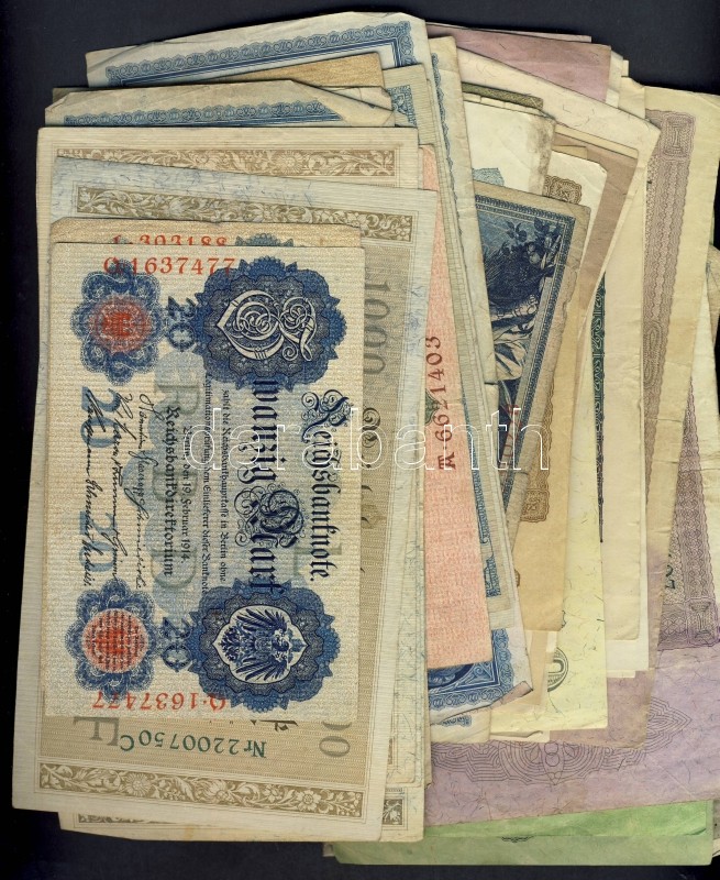 500klf bankjegy egész világ T:I + Német Birodalom századfordulótól 1940-es évekig + néhány db német megsz. II.V.H., NDK Rosenberg katalógus szerint feldolgozva, rengeteg változattal (tipus, vízjel, stb.) 135klf db T:II,III,IV(kevés), 49db klf dekoratív német szükségpénz T:I,II+,II + Franciaország 1793. 20Fr ritka Assignat T:IV Így az egész tételben összesen 685db klf bankjegy van!