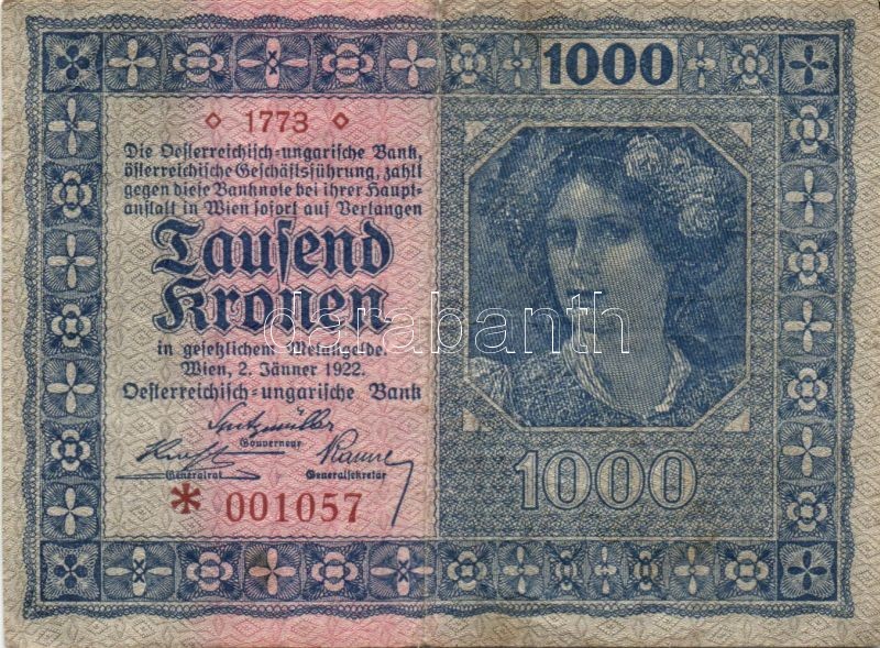 1912. 100K(1x), 1917. 2K(4x) fekete "Deutschösterreich fny-sal T:II + ... https://www.darabanth.com/de/91-Fernauktion/91.0/Numismatik/~15161/1912-100K1x-1917-2K4x-fekete-Deutschosterreich-fny-sal-TII-plus-Ausztria-1922-1000K-Osztrak~II202805