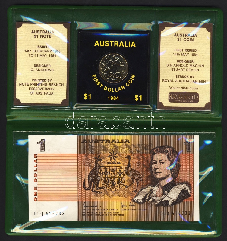 Beschreibung: Ausztrália 1983-84. 1$ "Első 1$-os érme" + 1$ "Utolsó 1$-os bankjegy" szettben T:BU,I