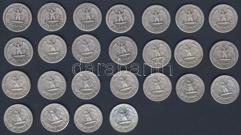 USA 1941-64. 1/4$ Ag "Washington" (25x) mind klf évszámmal és verdejel... https://www.darabanth.com/de/91-Fernauktion/91.0/Numismatik/~15170/USA-1941-64-14USD-Ag-Washington-25x-mind-klf-evszammal-es-verdejellel-T2-3-34~II197415