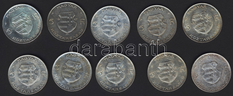 1947. 5Ft Ag "Kossuth" (10x) T:2/3,3 https://www.darabanth.com/de/91-Fernauktion/91.0/Numismatik/~15171/1947-5Ft-Ag-Kossuth-10x-T23-3~II201995
