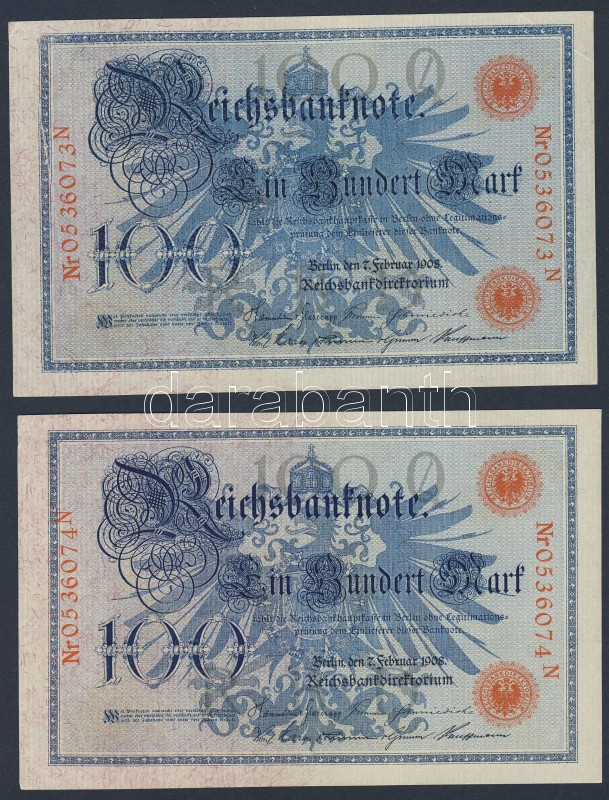 Német Birodalom/Császárság 1908. 10M(2x)egymásutáni sorszámokkal egyik... https://www.darabanth.com/de/91-Fernauktion/91.0/Numismatik/~15174/Nemet-BirodalomCsaszarsag-1908-10M2xegymasutani-sorszamokkal-egyiken-hatoldali-jol-lat~II201754