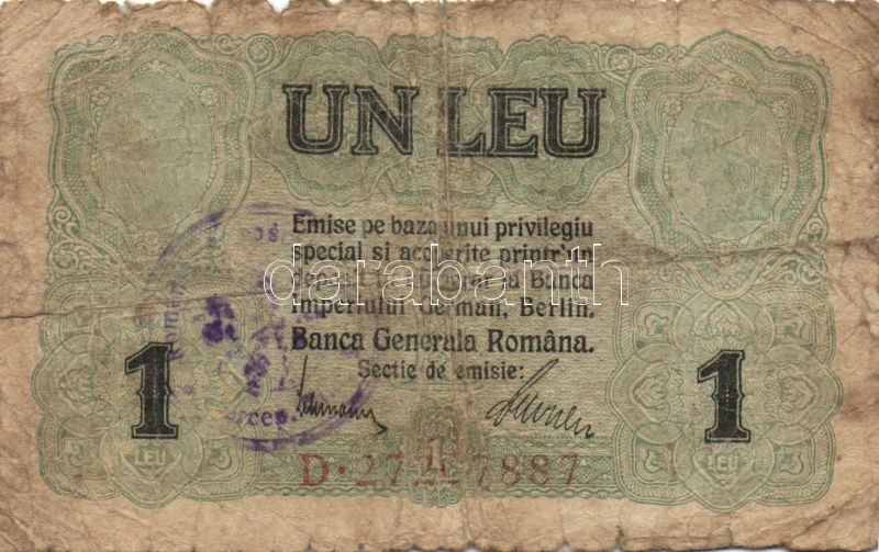 Románia/német megszállás 1917. 25b(1x), 50b(1x), 1L(5x), 2L(2x), 5L(2x... https://www.darabanth.com/de/91-Fernauktion/91.0/Numismatik/~15174/Romanianemet-megszallas-1917-25b1x-50b1x-1L5x-2L2x-5L2x-klf-lila-es-fekete-romC3~II200029