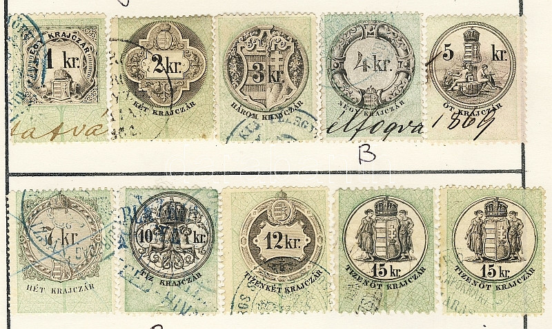 Beschreibung: 1868-1946 160db magyar okmánybélyeg cserefüzetben, kiadások szerint feldolgozva