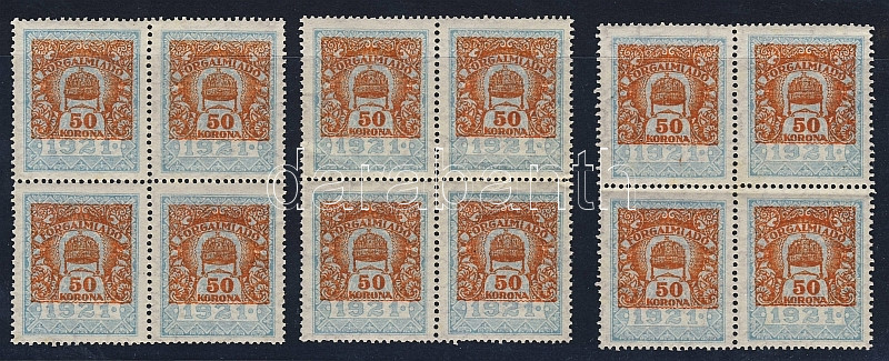 1921 3db 50K forgalmiadó bélyeg négyestömb https://www.darabanth.com/de/92-Fernauktion/92.0/Andere-Sammelgebiete/~280/1921-3db-50K-forgalmiado-belyeg-negyestomb~II205957