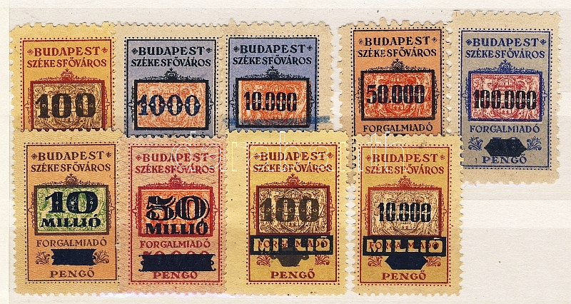 1945/46 Budapest Székesfőváros felülnyomott forgalmi adó bélyegek 9klf https://www.darabanth.com/de/92-Fernauktion/92.0/Andere-Sammelgebiete/~280/194546-Budapest-Szekesfovaros-felulnyomott-forgalmi-ado-belyegek-9klf~II205953