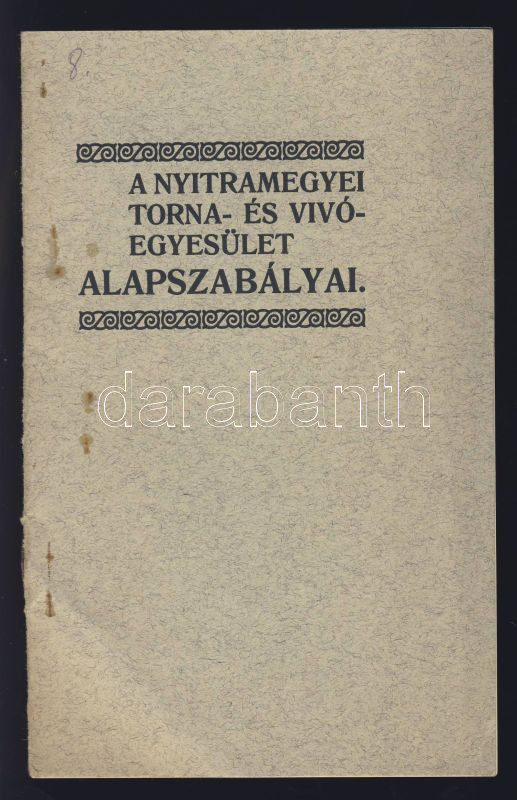 1913 A NYitramegyei Torna-vívó Egyesület alapszabályai https://www.darabanth.com/de/92-Fernauktion/92.0/Andere-Sammelgebiete/~289/1913-A-NYitramegyei-Torna-vivo-Egyesulet-alapszabalyai~II205740