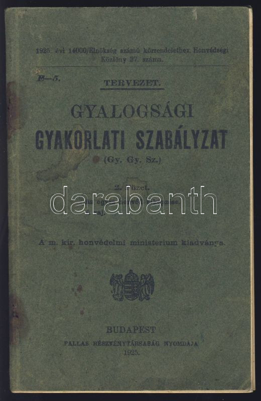 1925 Gyalogsági gyakorlati szabályzat a Magyar kir. Honvédség számára https://www.darabanth.com/de/92-Fernauktion/92.0/Andere-Sammelgebiete/~289/1925-Gyalogsagi-gyakorlati-szabalyzat-a-Magyar-kir-Honvedseg-szamara~II205561
