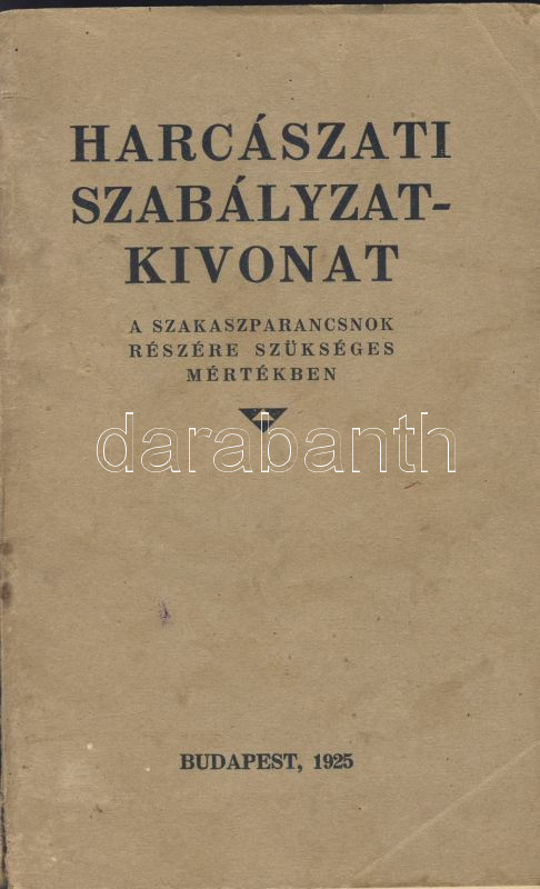 1925 Harcászati szabályzat-kivonat szakaszparancsnokoknak https://www.darabanth.com/de/92-Fernauktion/92.0/Andere-Sammelgebiete/~289/1925-Harcaszati-szabalyzat-kivonat-szakaszparancsnokoknak~II205559