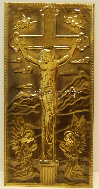 Beschreibung: Vallásos fém dombornyomat 26x50cm