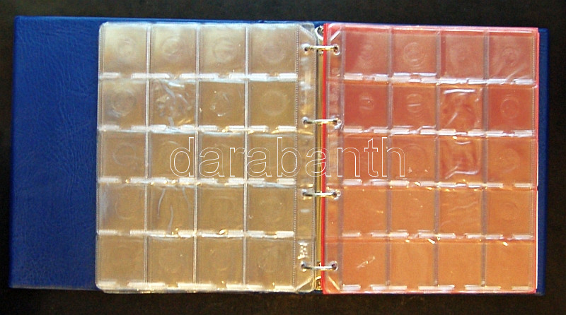 Beschreibung: Nagyalakú gyűrűs berakó Hartberger típusú éremtokokhoz, 19db lappal, 380 férőhellyel!, választólapokkal, kék színben!