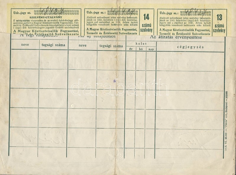 1941. "A Magyar Köztisztviselők Fogyasztási, Termelő és Értékesítő Szö... https://www.darabanth.com/de/92-Fernauktion/92.0/Numismatik/~293/1941-A-Magyar-Koztisztviselok-Fogyasztasi-Termelo-es-Ertekesito-Szovetkezete-uzletre~II205412