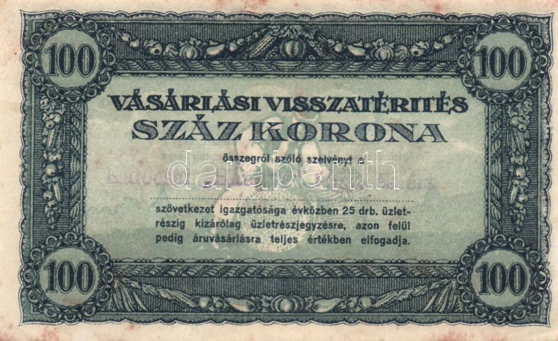 1920-as évek eleje 100K vásárlási visszatérítés lila "Kalocsai Hangya ... https://www.darabanth.com/de/92-Fernauktion/92.0/Numismatik/~294/1920-as-evek-eleje-100K-vasarlasi-visszaterites-lila-Kalocsai-Hangya-fogy-es-ert-belye~II207128