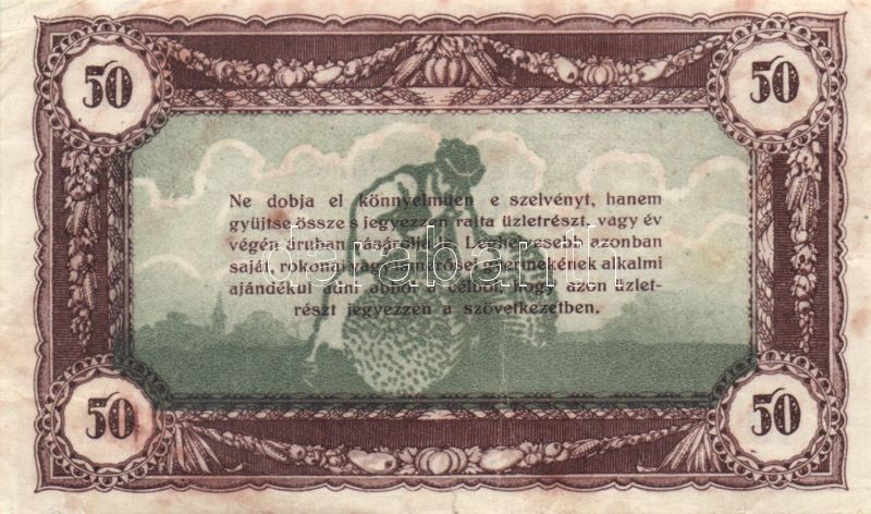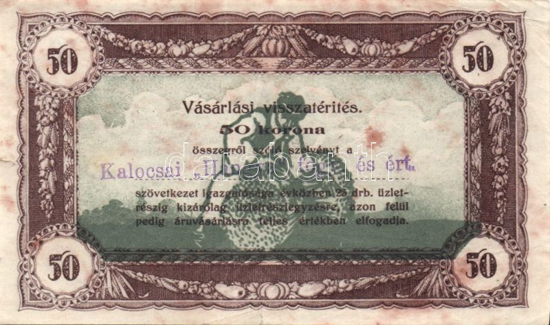 1920-as évek eleje 50K vásárlási visszatérítés lila "Kalocsai Hangya f... https://www.darabanth.com/de/92-Fernauktion/92.0/Numismatik/~294/1920-as-evek-eleje-50K-vasarlasi-visszaterites-lila-Kalocsai-Hangya-fogy-es-ert-belyeg~II207127