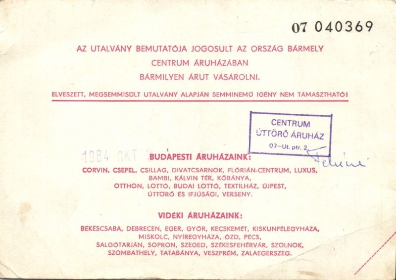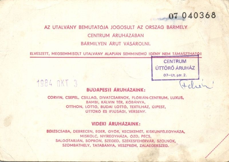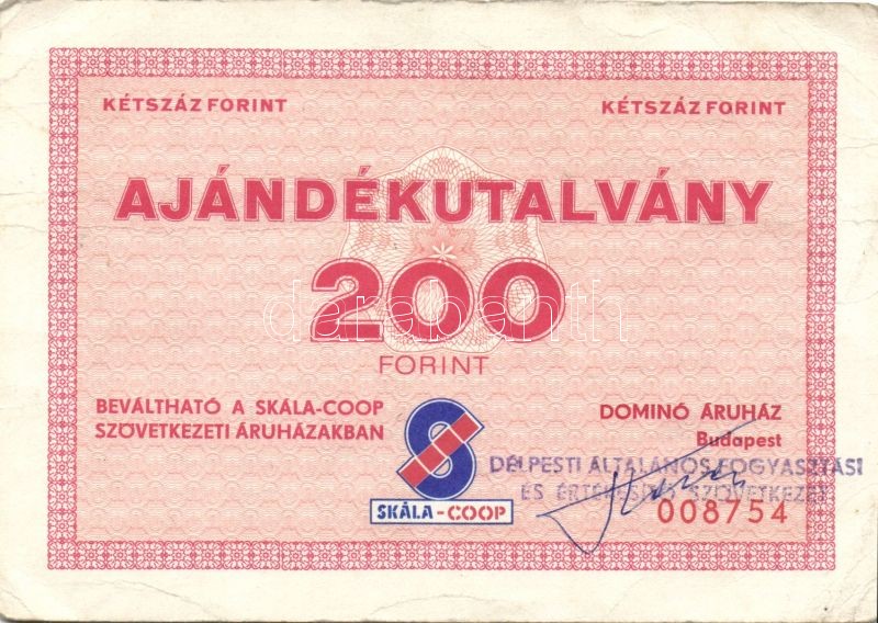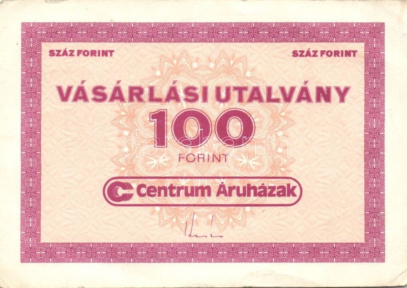 1980-as évek "Centrum Áruházak" 100Ft vásárlási utalvány (2x) + "Skála... https://www.darabanth.com/de/92-Fernauktion/92.0/Numismatik/~294/1980-as-evek-Centrum-Aruhazak-100Ft-vasarlasi-utalvany-2x-plus-Skala-Coop-200Ft-vasarlC3~II207043