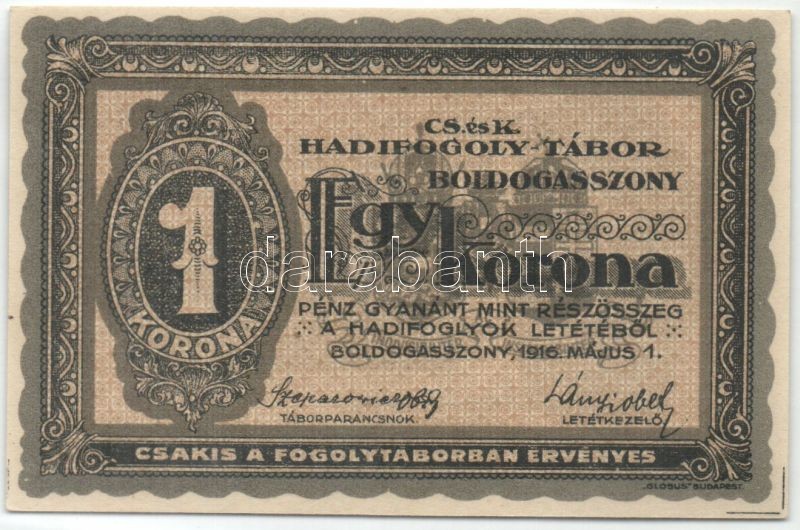 Boldogasszony/hadifogolytábor 1916. 1K "MS"(Museum Serie) jelzéssel T:... https://www.darabanth.com/de/92-Fernauktion/92.0/Numismatik/~294/Boldogasszonyhadifogolytabor-1916-1K-MSMuseum-Serie-jelzessel-TI~II207315