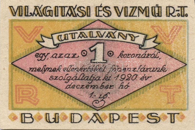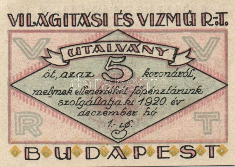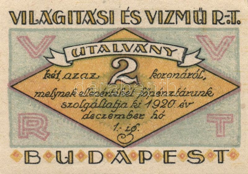 Beschreibung: Budapest 1920. "Világítási és Vízmű Rt." 1K, 2K, 5K, 3klf db T:I,I-