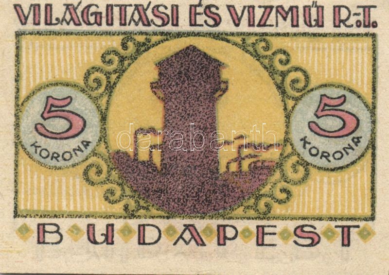 Budapest 1920. "Világítási és Vízmű Rt." 1K, 2K, 5K, 3klf db T:I,I- https://www.darabanth.com/de/92-Fernauktion/92.0/Numismatik/~294/Budapest-1920-Vilagitasi-es-Vizmu-Rt-1K-2K-5K-3klf-db-TI-I-~II207038