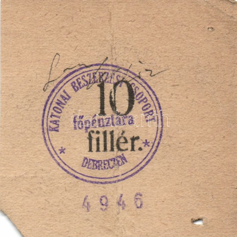 Debrecen 1918. 10f, 30f, 40f "Katonai Beszerzési Csoport főpénztára" s... https://www.darabanth.com/de/92-Fernauktion/92.0/Numismatik/~294/Debrecen-1918-10f-30f-40f-Katonai-Beszerzesi-Csoport-fopenztara-szamozassal-ill-alair~II207064