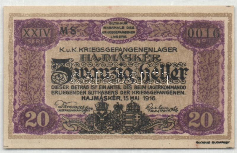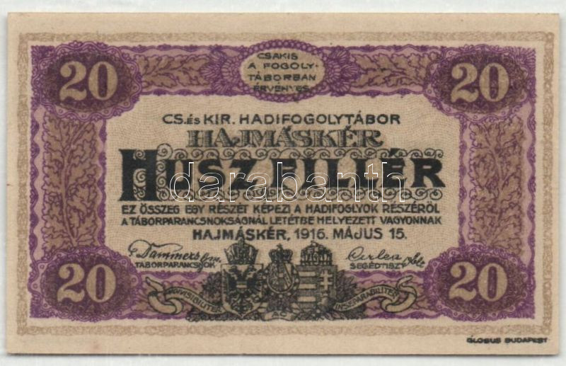 Hajmáskér/hadifogolytábor II.kiadás 1920. 20f római sorozat és arab sz... https://www.darabanth.com/de/92-Fernauktion/92.0/Numismatik/~294/Hajmaskerhadifogolytabor-IIkiadas-1920-20f-romai-sorozat-es-arab-szamozas-MSMuseum-Ser~II207316