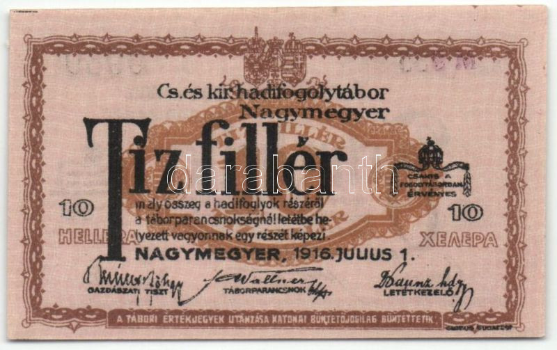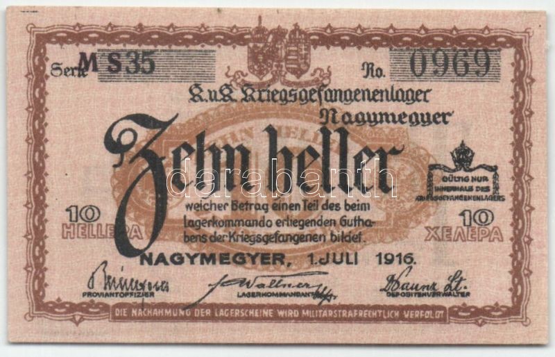 Nagymegyer/hadifogolytábor 1916. 10f "MS"(Museum Serie) T:I https://www.darabanth.com/de/92-Fernauktion/92.0/Numismatik/~294/Nagymegyerhadifogolytabor-1916-10f-MSMuseum-Serie-TI~II207328