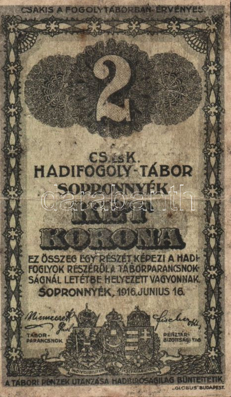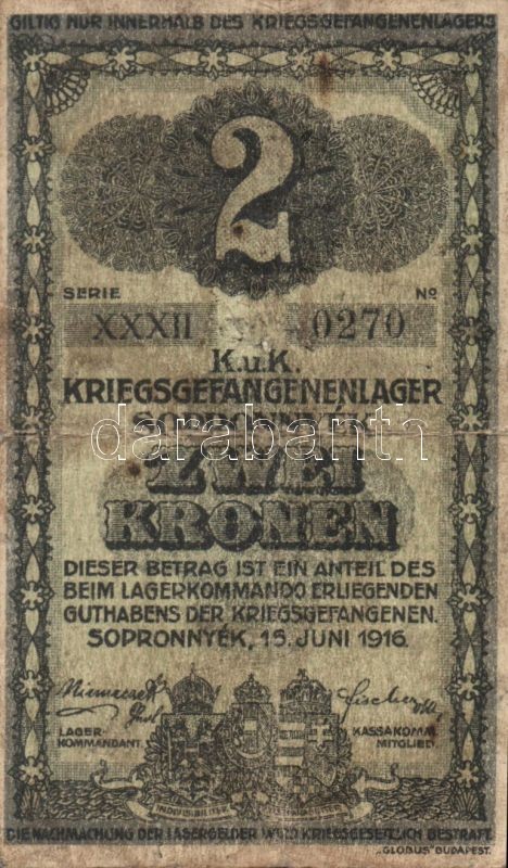 Sopronnyék/hadifogolytábor 1916. 2K T:III https://www.darabanth.com/de/92-Fernauktion/92.0/Numismatik/~294/Sopronnyekhadifogolytabor-1916-2K-TIII~II207347